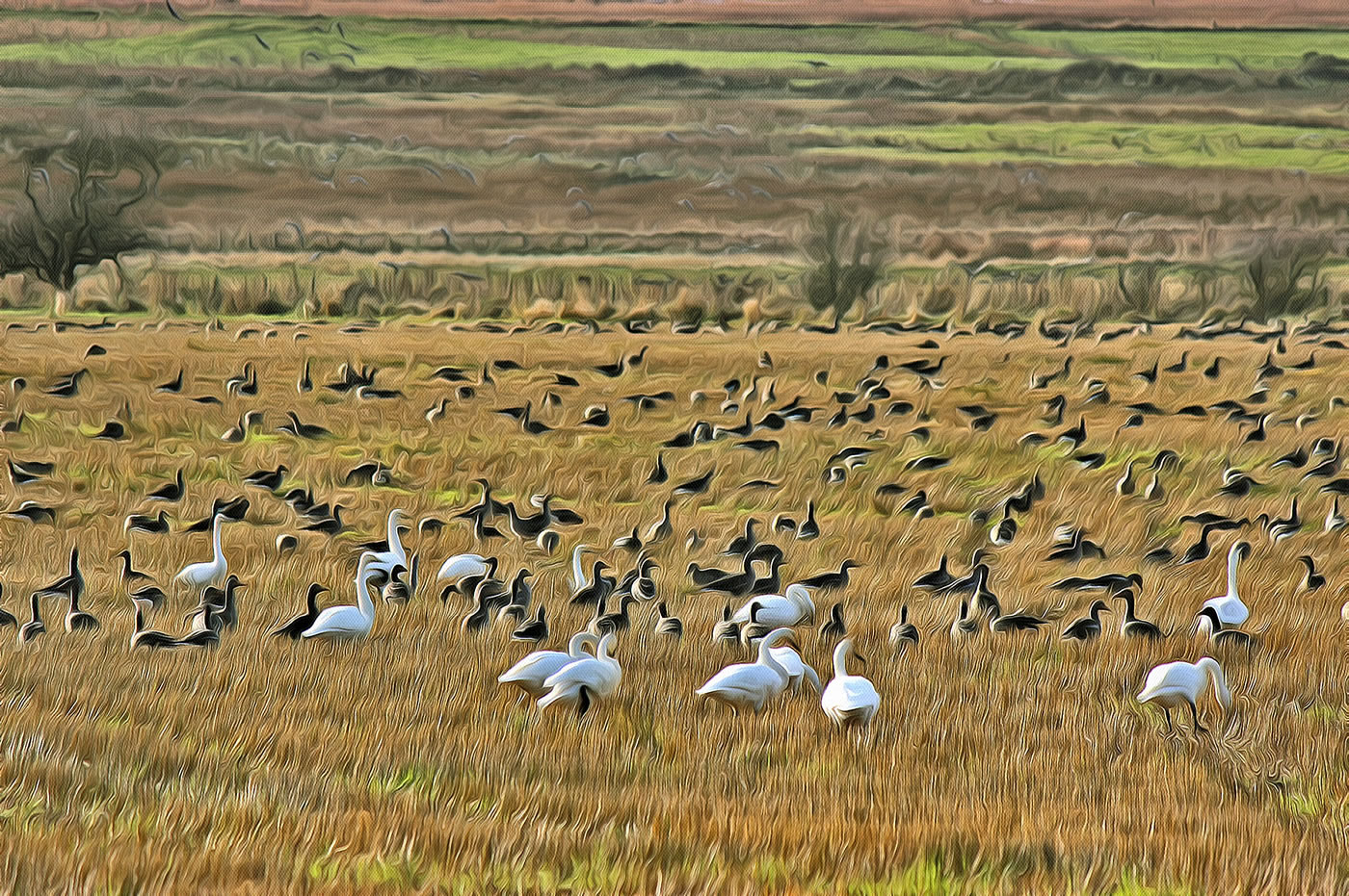 Migratory whooper swans and geese on a field during winter months in the far north of Scotland. Pictures of swans photo set no. 147. Original picture taken by the webmaster. You can share, use, modify the images for free, just click on the picture above and right click mouse for options to save or share. Larger images can be found on these links - original picture - creative 1 - creative 2 - creative 3 - creative 4 - creative 5 - creative 7 - creative 7