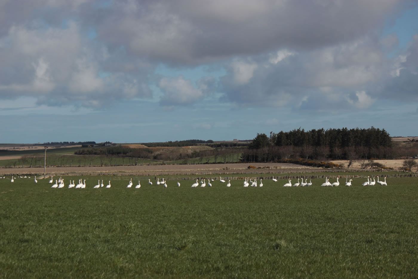 Whooper swans in a field during winter months in the far north of Scotland in the county of Caithness. Pictures of swans photo set no. 151. Original picture taken by