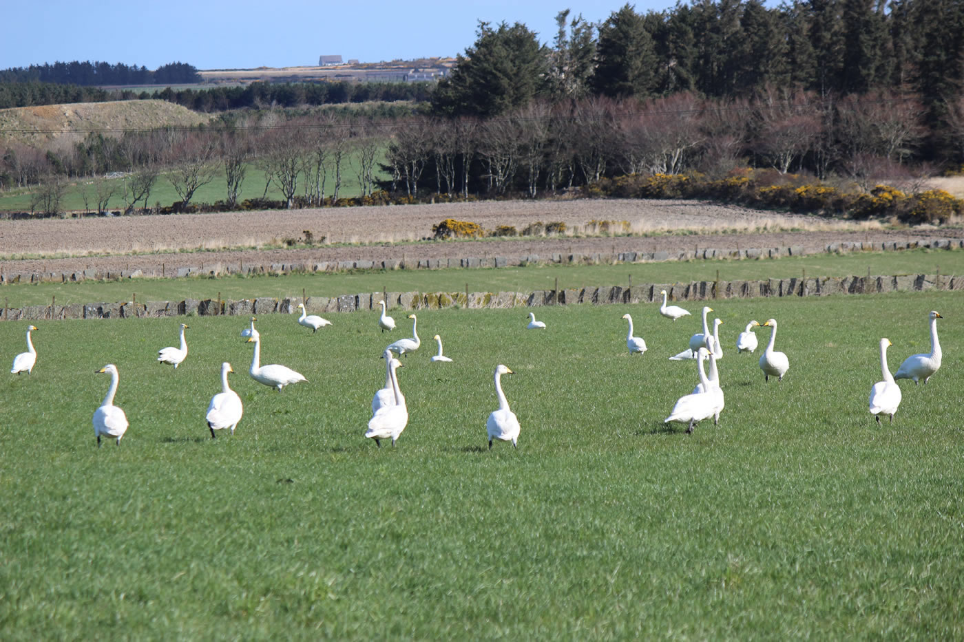 Migratory whooper swans and geese on a field during winter months in the far north of Scotland. Pictures of swans photo set no. 149. Original picture taken by the webmaster. You can share, use, modify the image for free, just click on the picture above and right click mouse for options to save or share.
